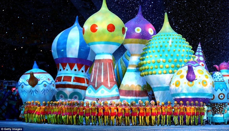| Sau đó pháo hoa được bắn lên tạo ra những tiếng nổ lớn trên bầu trời ở Sochi. |