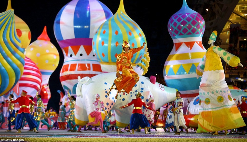 | Một cảnh trong buổi Lễ khai mạc được dàn dựng công phu. |