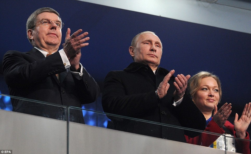 | Tổng thống Nga Vladimir Putin (giữa) cũng đến tham dự buổi Lễ khai mạc. |