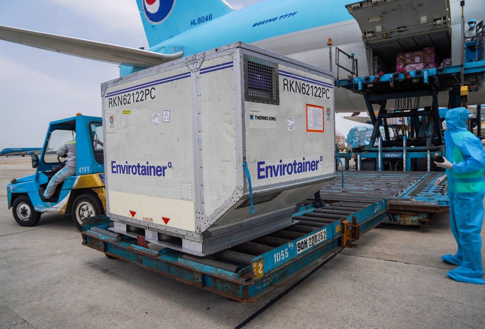 | Lãnh đạo Bộ Y tế, Lãnh sự Vương quốc Anh tại TP HCM, Hệ thống tiêm chủng VNVC và Công ty AstraZeneca Việt Nam, Cảng hàng không quốc tế Tân Sơn Nhất có mặt tại sân bay đón lô vaccine Covid-19 của AstraZeneca đầu tiên về Việt Nam theo hợp đồng đặt mua giữa VNVC và AstraZeneca. |