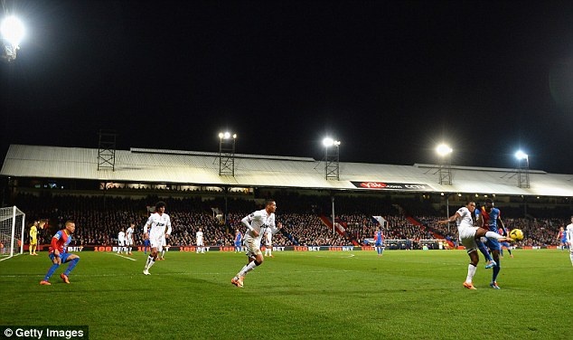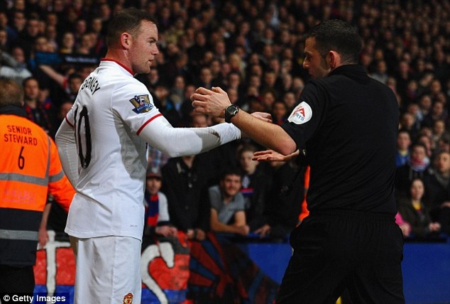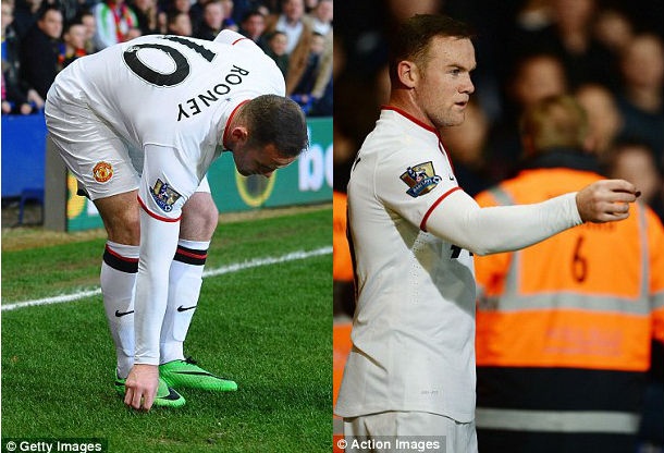 | Wayne Rooney nhặt đồng xu do CĐV Crystal Palace ném xuống sân. |