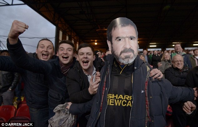 | Mặt nạ mang hình huyền thoại Eric Cantona xuất hiện trên sân của Crystal Palace. Cầu thủ khoác áo số 7 lừng danh một thời của M.U từng thực hiện một cú kung-fu đối với CĐV Thomas Simmons của Crystal Palace. |