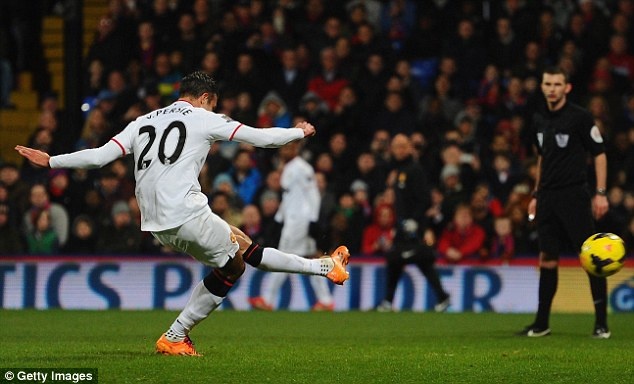 | M.U chỉ có thể khai thông bế tắc trận đấu sau pha sút penalty thành công của Van Persie. |