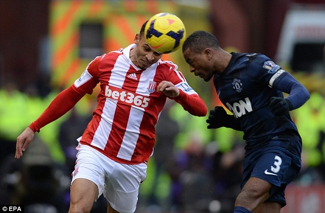 | Pha tranh bóng giữa Peter Odemwingie và Evra cho thấy trận đấu diễn ra quyết liệt ngay từ đầu. |