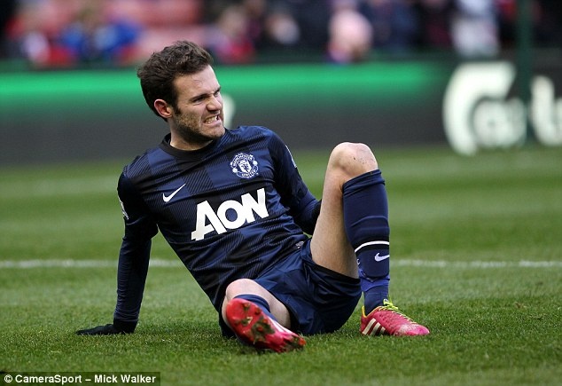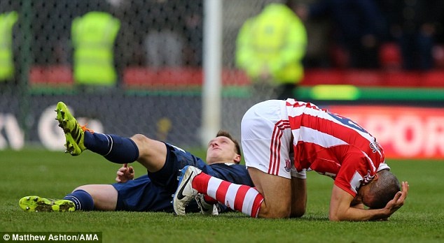 | Tiền vệ người Tây Ban Nha bị đau sau pha va chạm với cầu thủ Stoke trong hiệp 1. |