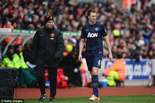 | Phil Jones dính chấn thương sau pha va chạm với Jon Walters bên phía đội chủ nhà. |