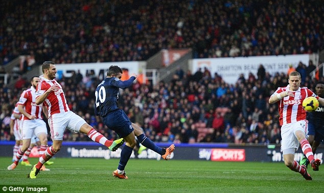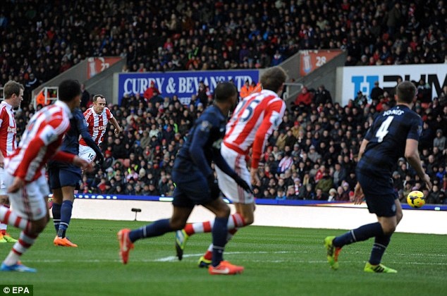 | Charlie Adam sút phạt ghi bàn cho Stoke. |