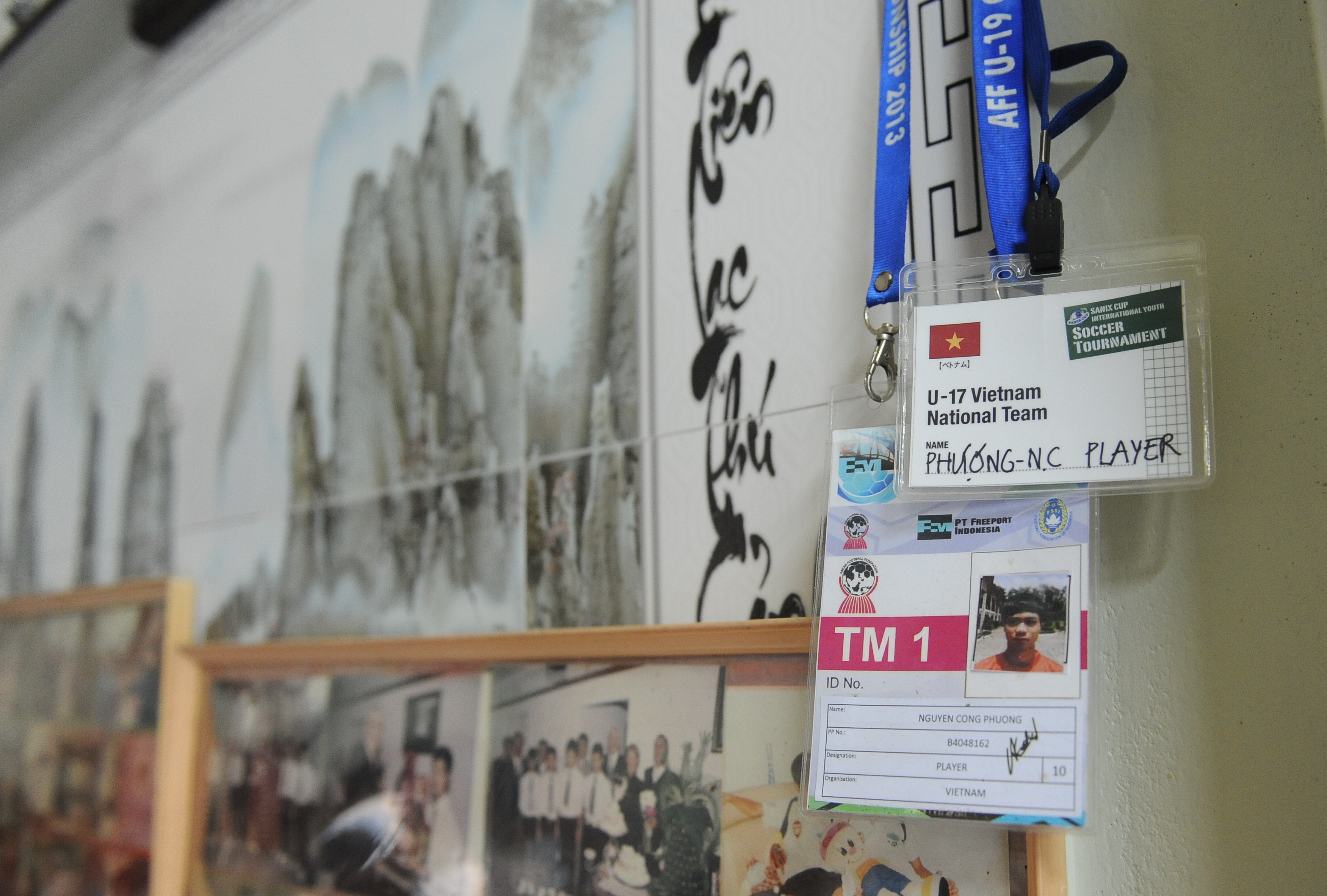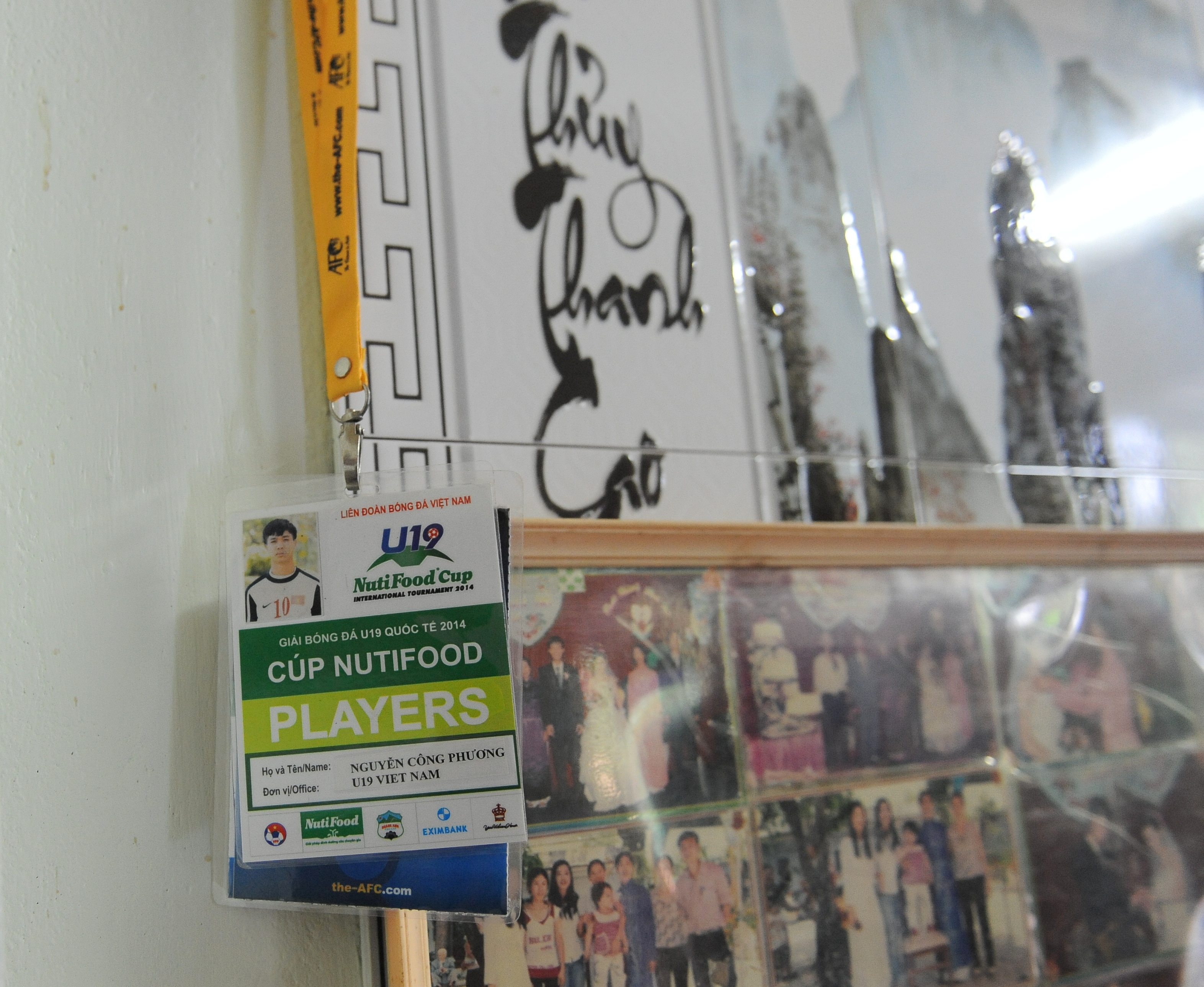 | Ngày thường những tấm thẻ vận động viên của Công Phượng tham gia các giải đấu trong năm cũng được cất ở phòng khách, tuy nhiên ngày cận Tết ông Bảy muốn treo ảnh có mặt Công Phượng ở khắp nơi trong nhà. |