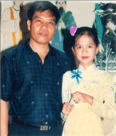 Cô bé Ngọc Trinh duyên dáng áo dài bên ba ngày nào. |