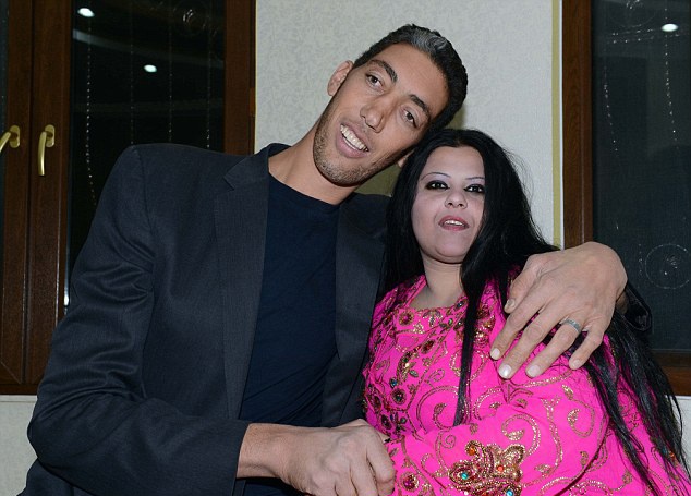 | Kosen hạnh phúc bên hôn thê, Merve Dibo trong lễ cưới. Kosen sinh năm 1982 tại Mardin, Thổ Nhĩ Kỳ và hiện là người cao nhất thế giới (2m 51). Vợ của Kosen cao 1m 73 và chỉ cao quá eo anh. Ảnh: Getty. |
