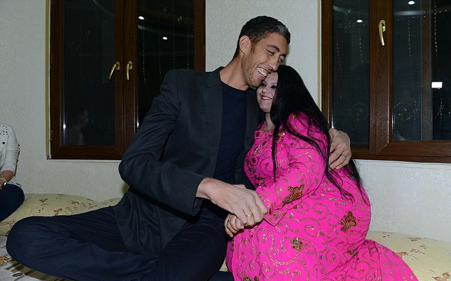 | Cô dâu chú rể hạnh phúc trong ngày cưới. Cô dâu Dibo năm nay 20 tuổi và cũng là người Thổ Nhĩ Kỳ. Chú rể Kosen từng từ bỏ ý định tìm ý chung nhân vì các cô gái đều "choáng" trước chiều cao "khủng" của anh. Tuy nhiên, suy nghĩ của anh thay đổi khi gặp Dibo. Ảnh: Getty. |