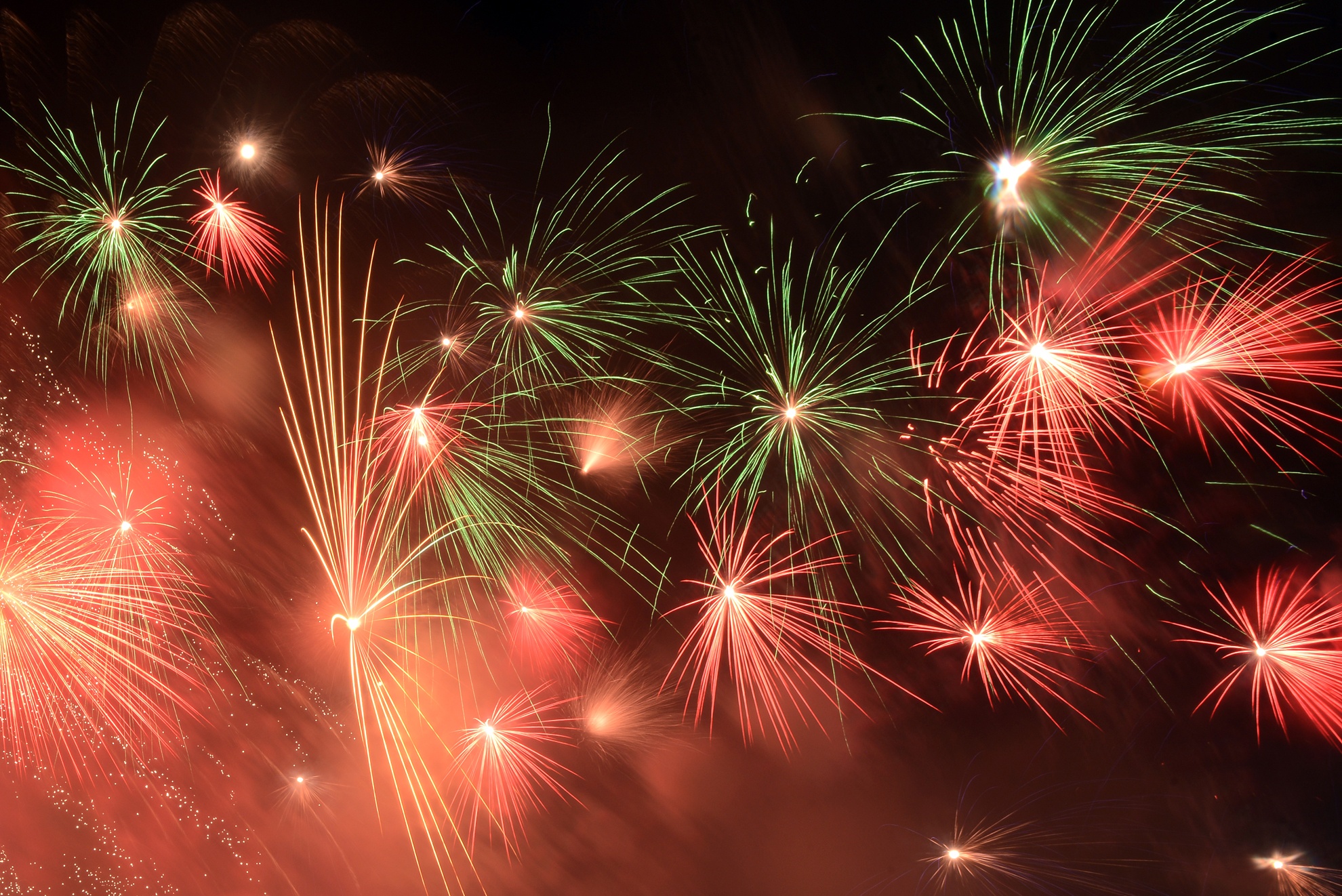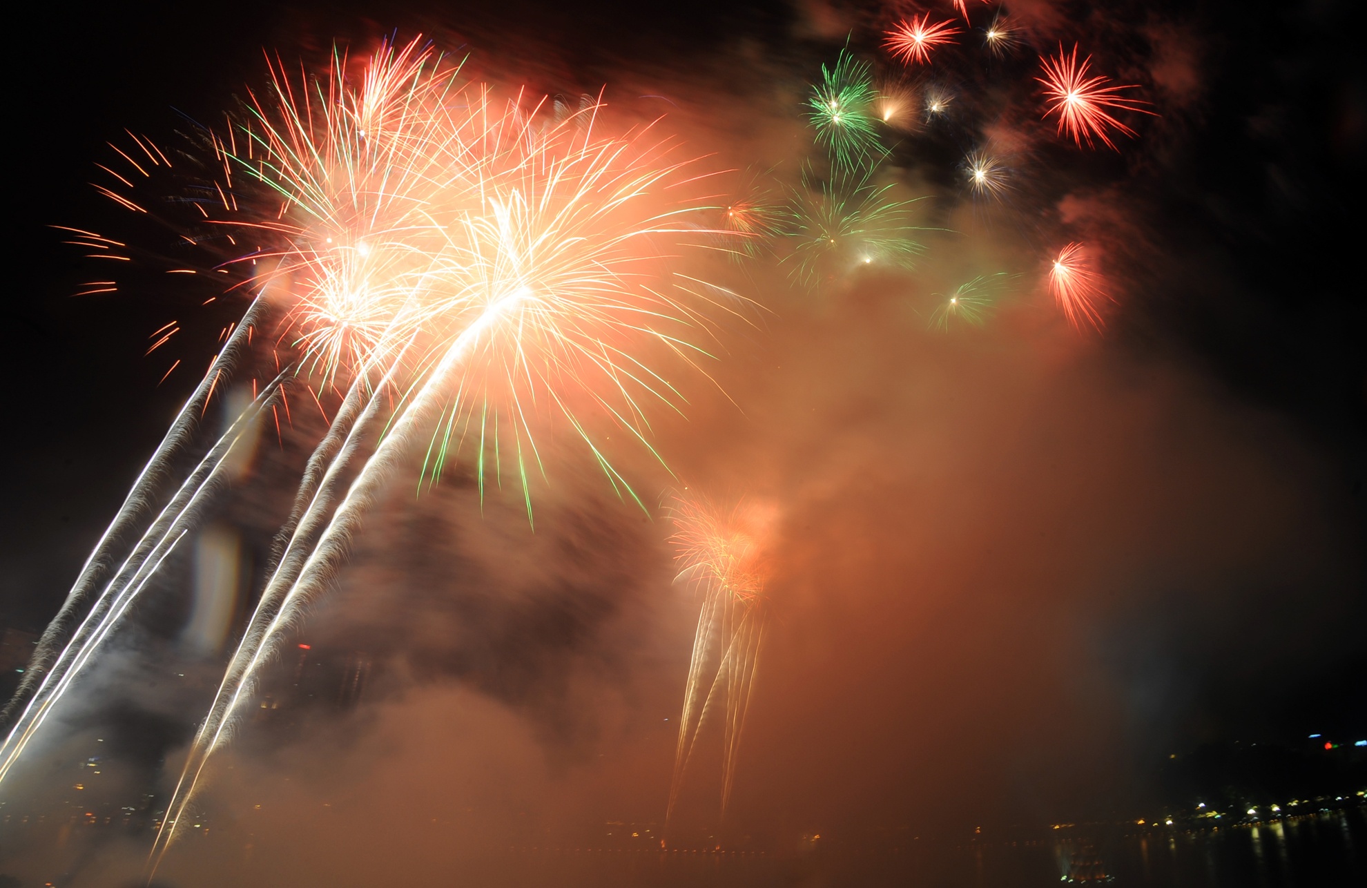 | Pháo hoa tầm cao ở TP HCM được trình diễn với nhiều màu sắc. |