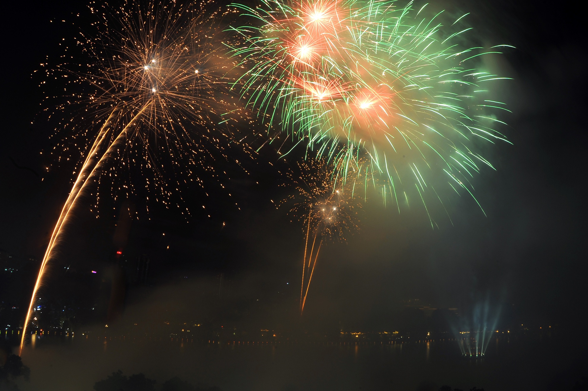 | Thời tiết không thuận lợi, mưa kéo dài, song màn pháo hoa 15 phút vẫn khiến người dân thích thú. |