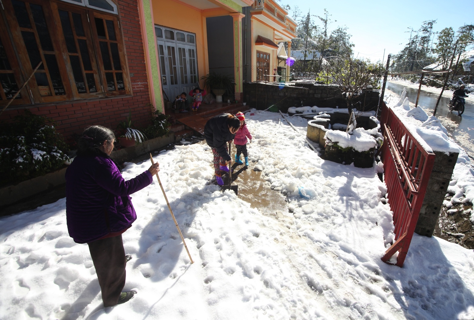 Lớp tuyết phủ xuống bề mặt thị trấn Sa Pa có nơi dày đến 20cm.