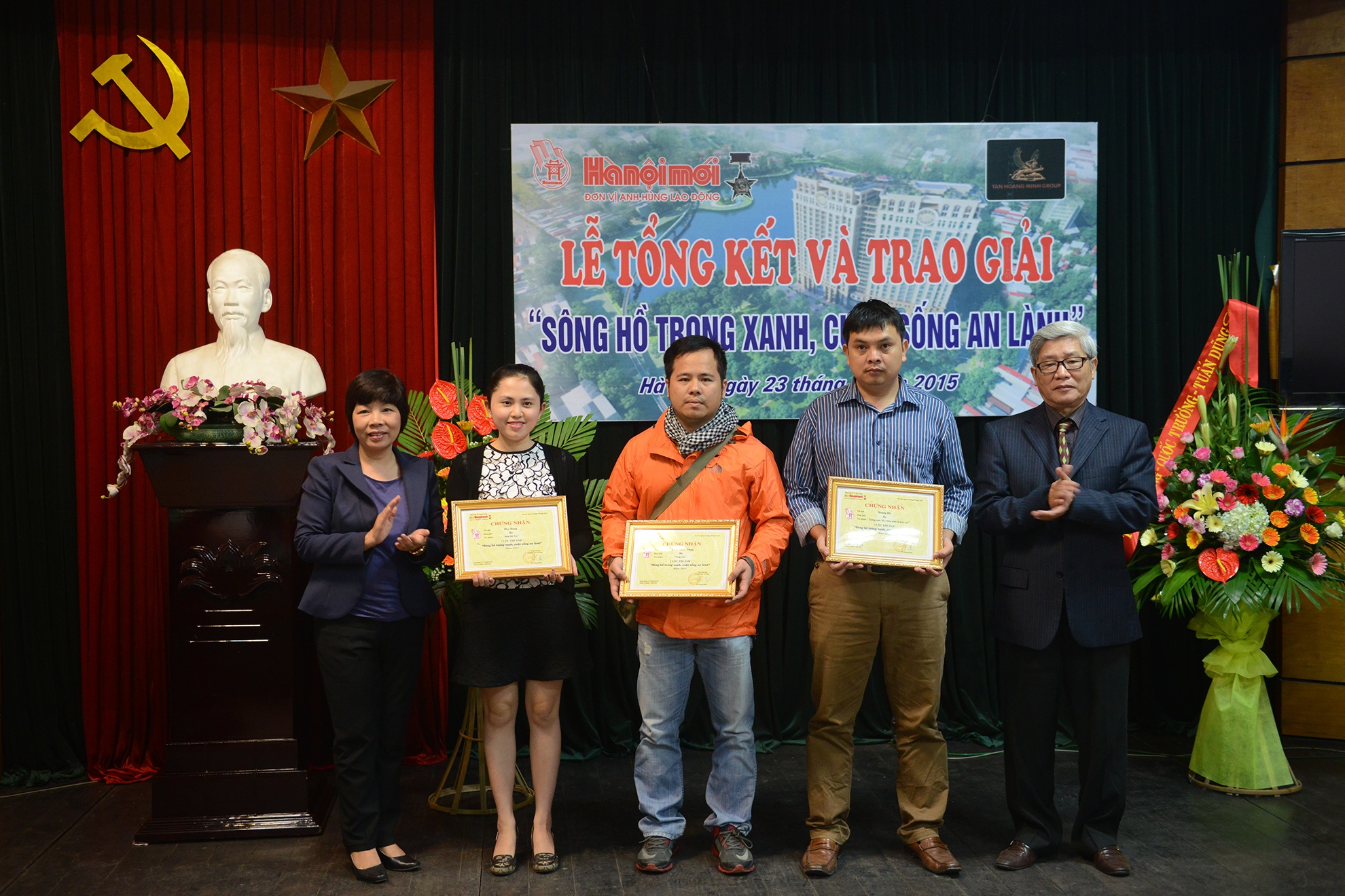 | Lễ trao giải đã diễn ra sáng 23/4 tại trụ sở báo Hà Nội Mới. Trong ảnh là các tác giả đoạt giải ba, mỗi giải 10 triệu đồng. |