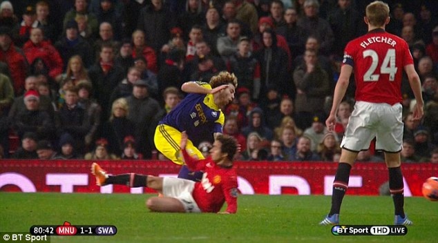 | Swansea đã tận dụng rất tốt lợi thế hơn người để ghi bàn kết liễu MU. |