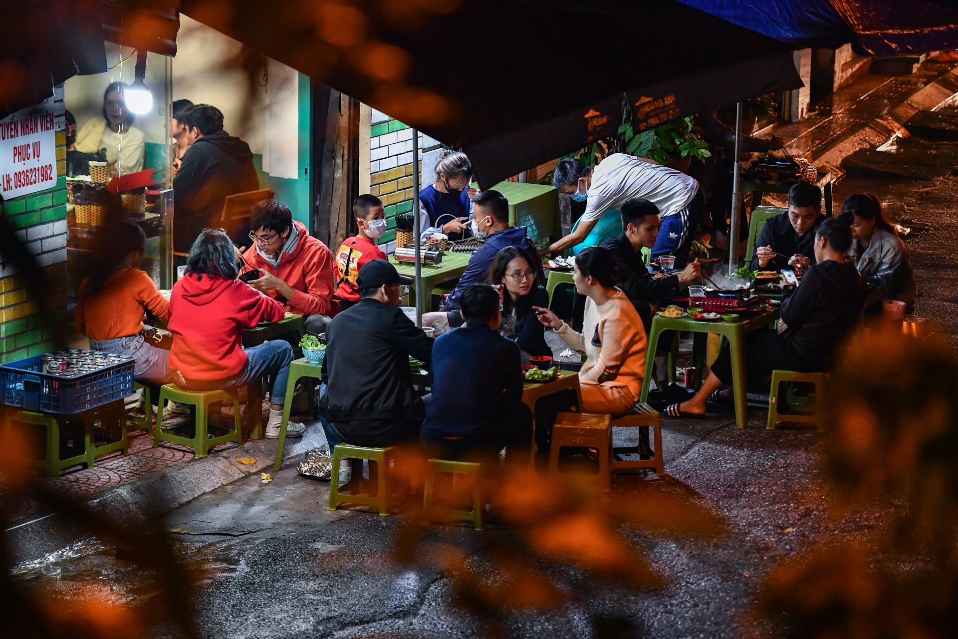 Các quán bán đồ ăn nóng như lẩu, thịt nướng ở Hà Nội đông khách tới thưởng thức khi trời mưa phùn, trở lạnh. Ảnh: Đức Anh.