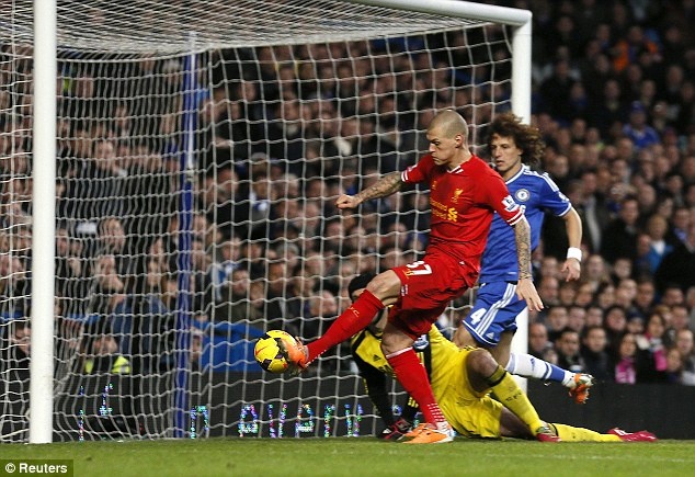 | Skrtel mở tỷ số cho Liverpool sau khi trận đấu diễn ra được 4 phút. |