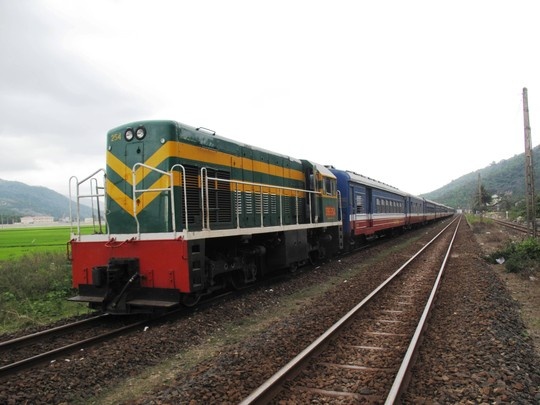 Đoàn tàu SQ1 bị kẹt tại ga Hảo Sơn (Hòa Xuân Nam, huyện Đông Hoà, Phú Yên). |