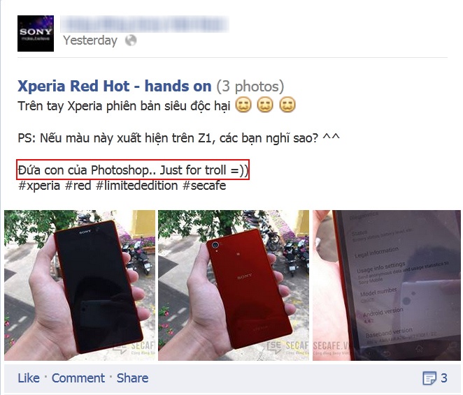 Sau khi hình ảnh được lan truyền, đã có khá nhiều ý kiến trái chiều nhau về chiếc Xperia Z1 màu đỏ. Một số cho rằng, đó là sản phẩm bản thử nghiệm dành cho các nhà phát triển. Trong khi đó, một số khác khẳng định đây là sản phẩm giả mạo bởi điểm bất hợp lý nhất chính là việc trong phần thông tin giới thiệu sản phẩm, model này đang chạy Android 4.2.2 – phiên bản Android chưa từng có trên bất cứ mẫu Nexus nào.