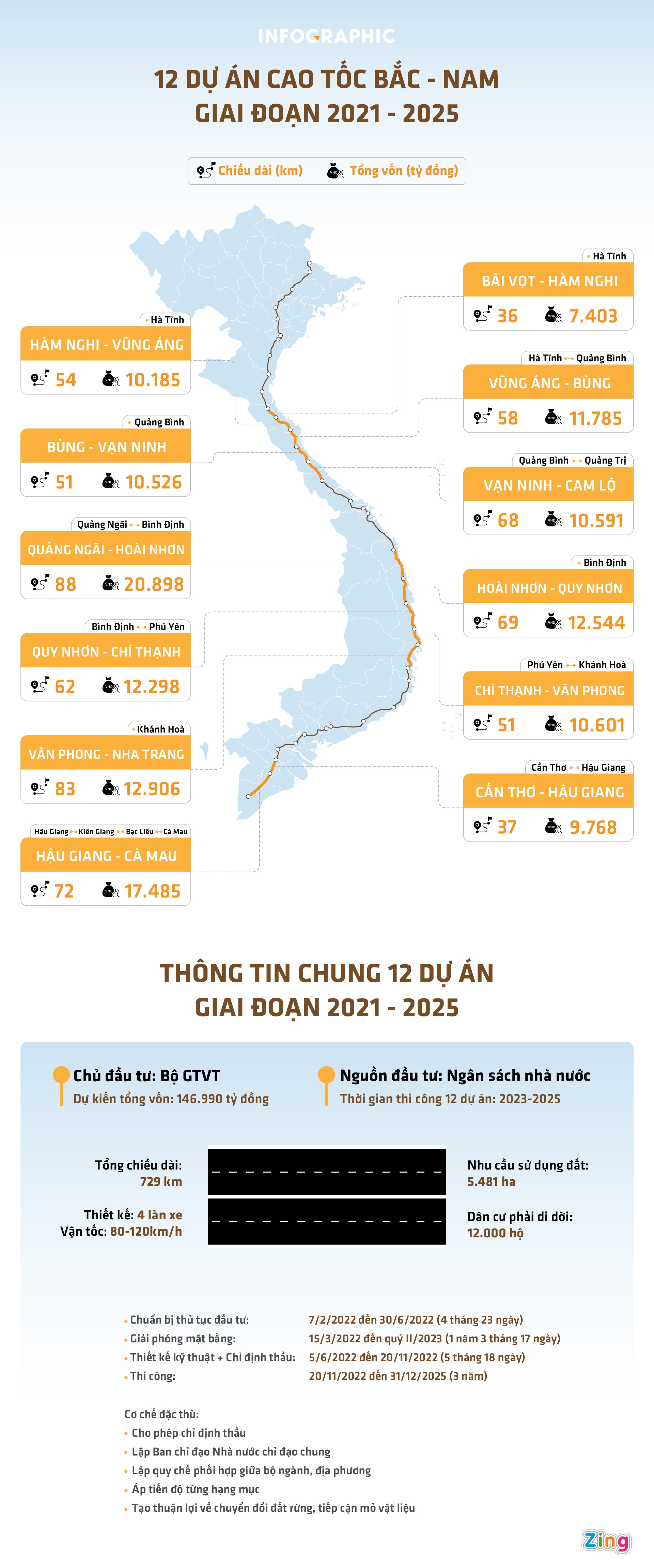 Hình dáng 12 dự án cao tốc Bắc - Nam giai đoạn 2021-2025