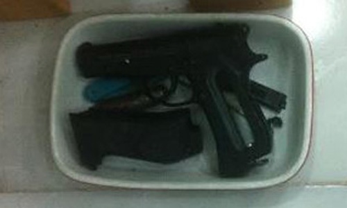 | Súng công an thu được tại nhà của anh em Tuấn Anh. |