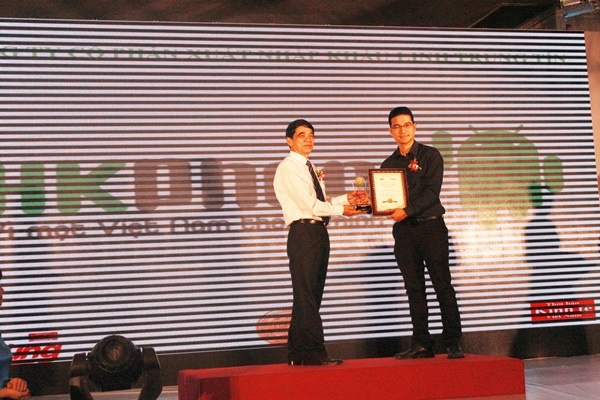 | Đại diện HKPhone vinh dự lên nhận giải Thương hiệu điện thoại Việt Nam được ưa chuộng nhất. |