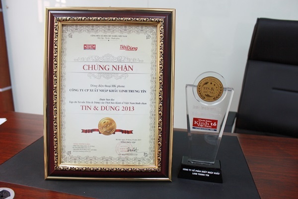 Lễ công bố kết quả khảo sát và vinh danh 100 sản phẩm - dịch vụ Tin & Dùng Việt Nam 2013 diễn ra tại trung tâm hội nghị Riverside Palace, Q.1, TP.HCM. Theo ban tổ chức, qua việc thực hiện bình chọn trên 5.000 sản phẩm, dịch vụ được đề cử, với 15.000 phiếu bình chọn và 43.000 ý kiến đánh giá trực tuyến, chương trình đã chọn ra 100 sản phẩm, dịch vụ được nhiều người tin dùng nhất. Trong đó HKPhone vinh dự được trao giải Thương hiệu điện thoại Việt Nam được ưa chuộng nhất.