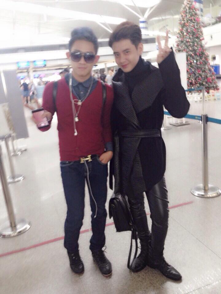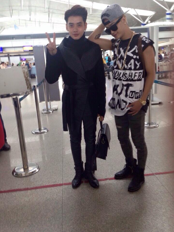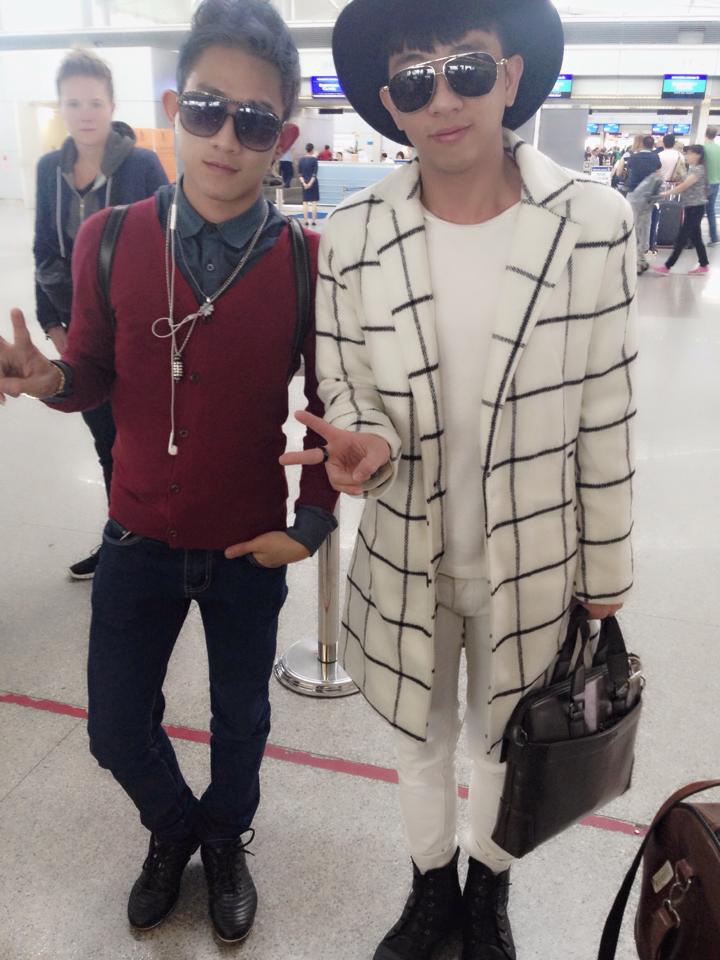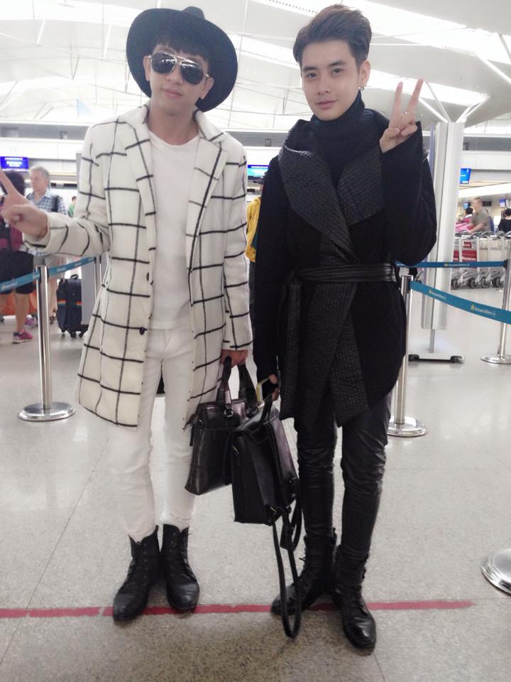 | Nam ca sĩ Lý Tuấn Kiệt nổi bật phối hai màu trắng đen ăn ý. Anh chụp hình cùng người bạn. So với hai thành viên còn lại, ngoài khả năng ca hát và nhảy, Tuấn Kiệt còn có thể sáng tác nhạc. Sau buổi họp báo diễn ra ngày 4/1 tại Hong Kong, nhóm sẽ biểu diễn tại đây vài ngày trước khi về Việt Nam. |