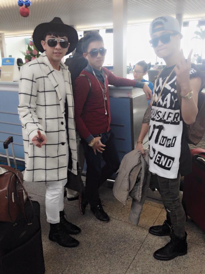 Sáng 3/1, ba thành viên nhóm nhạc Vpop ăn mặc sành điệu, phong cách rủ nhau chụp hình "check -in" ở sân bay quốc tế Tân Sơn Nhất để sang Hong Kong họp báo phim mới.