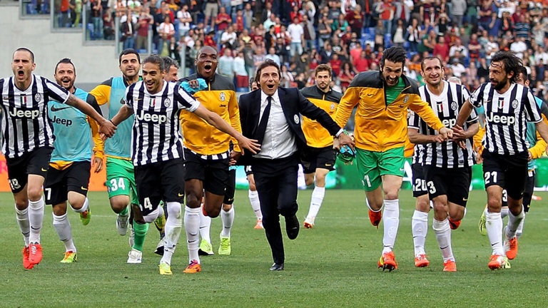 | Conte và Juventus ăn mừng Scudetto thứ 3 liên tiếp. |