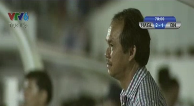 | Trong trận hoà 2-2 trước Đồng Nai, bầu Đức có mặt trong khu vực kỹ thuật của HAGL. |