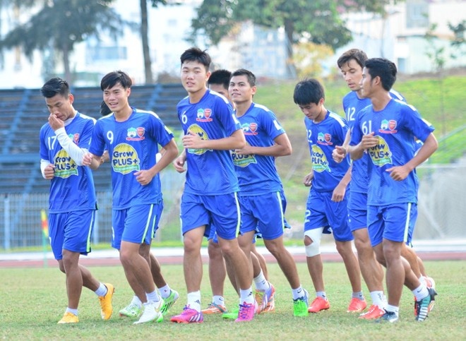 | Các cầu thủ HAGL tập làm quen sân Cần Thơ chuẩn bị cho trận đấu diễn ra vào lúc 16h chiều nay (7/2). Ảnh: Nguyễn Đăng. |