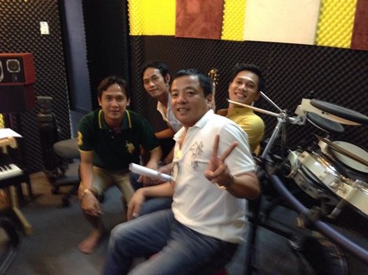 | Huỳnh Đức cũng thử giọng ở phòng thu. Ảnh: FB |