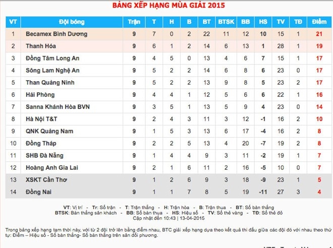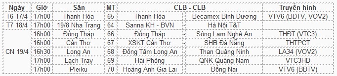 Lịch thi đấu vòng 10 V.League 2015