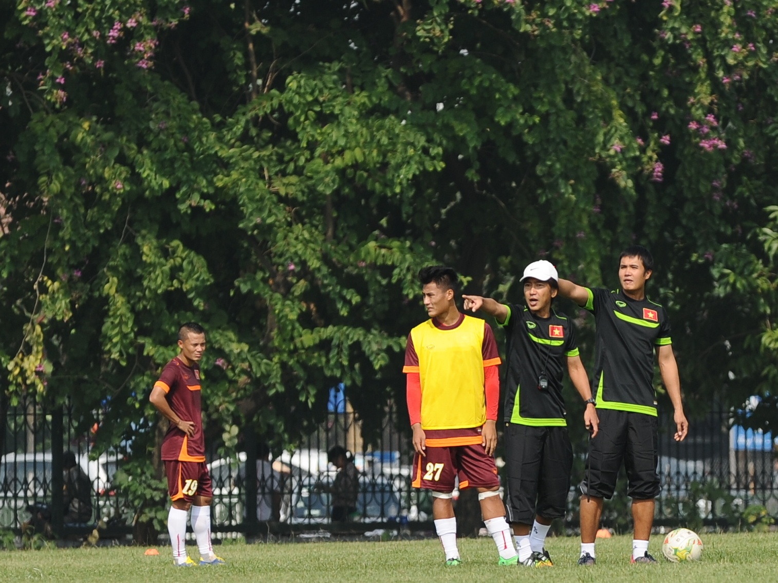 | Công Vinh chăm chỉ tập sút phạt dù hiệu suất chưa thật cao. Tất cả đều quyết tâm cao hướng đến thành tích cao nhất tại AFF Cup 2014. |