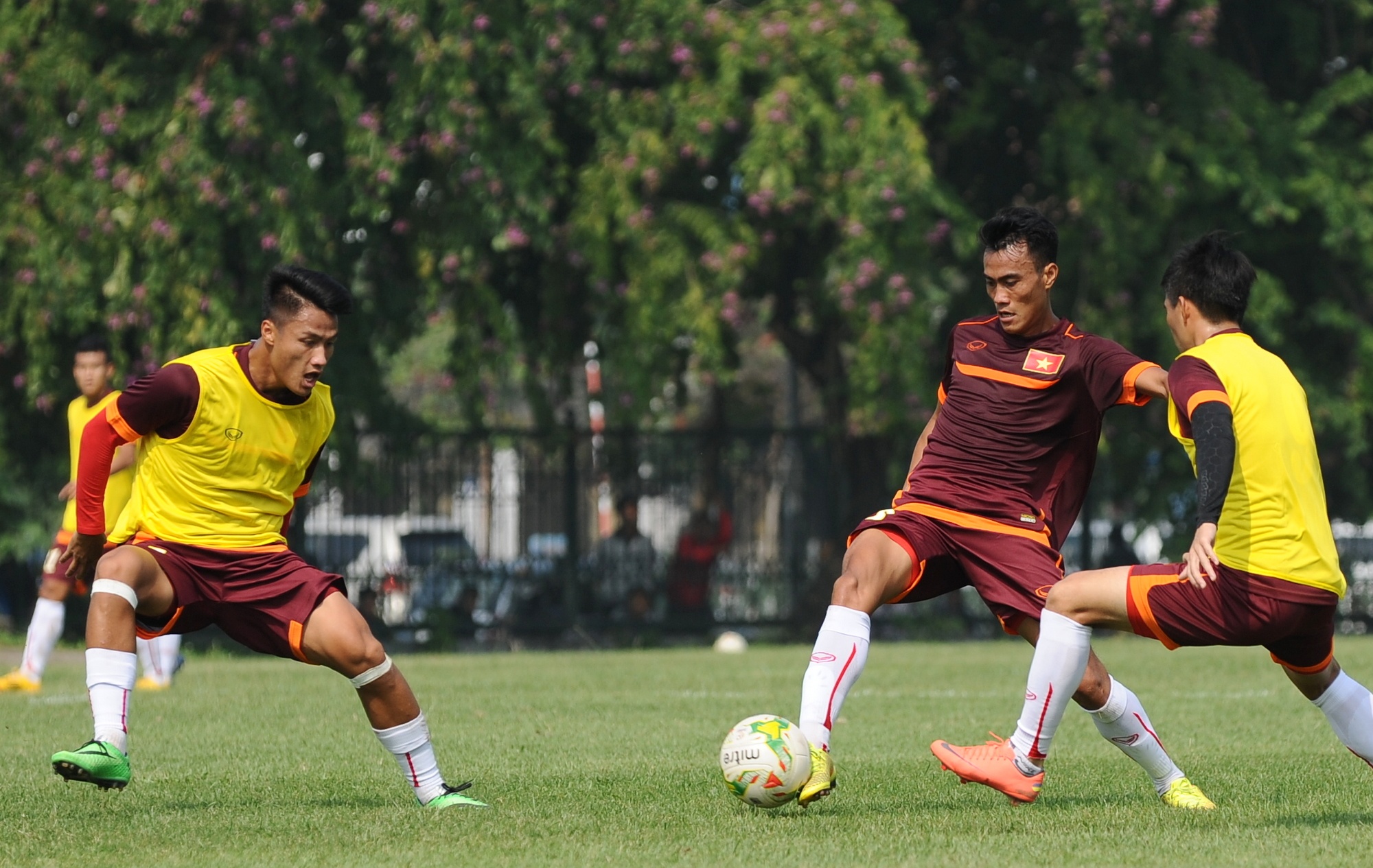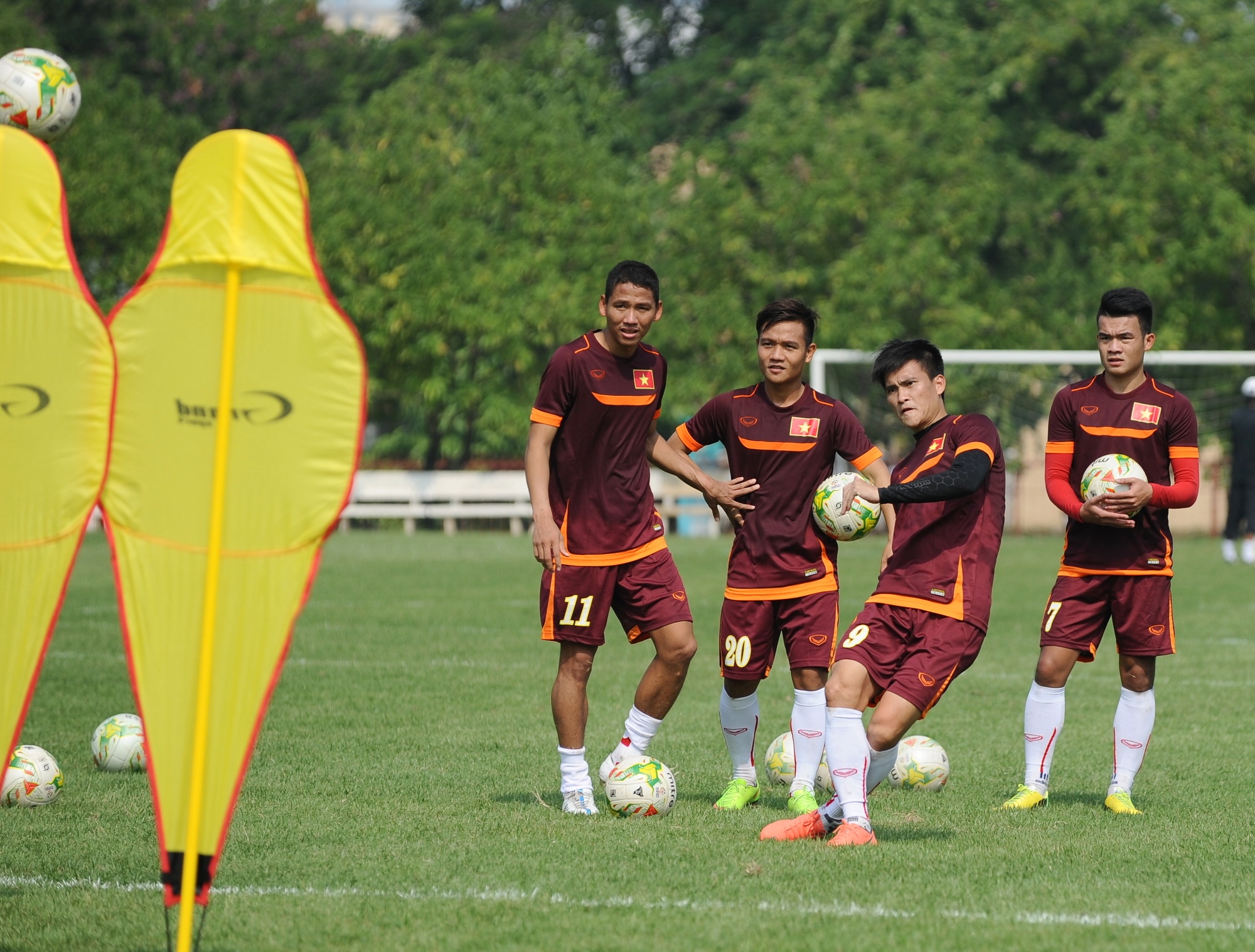 | Hàng hậu vệ phải vắt sức cản phá những tình huống căng ngang khó chịu để tập làm quen với cách chơi tương tự mà đối thủ sẽ sử dụng để khắc chế tuyển Việt Nam. |