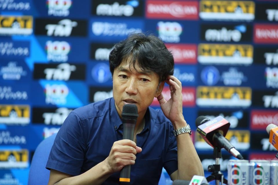 | HLV Miura trả lời truyền thông khu vực sau trận thắng của U23 Việt Nam. Ảnh: Anh Tuấn |