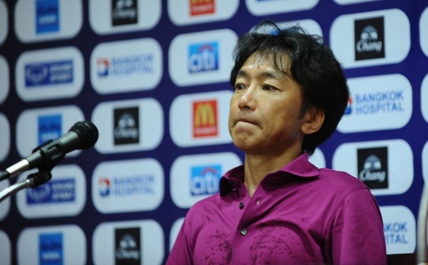 Tỏ ra rất tiếc nuối khi kế hoạch vạch ra từ đầu trận không được thực thi trọn vẹn, HLV người Nhật Bản bước vào phòng họp báo với khuôn mặt buồn bã, mệt mỏi. Chiếc áo phông ông mặc trong trận gặp Thái Lan cũng thấm đẫm mồ hôi sau 90 phút căng thẳng trên sân Rajamangala.