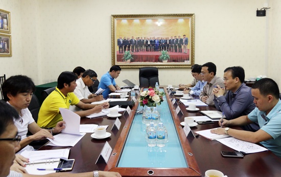| HLV Miura làm việc với Hội đồng HLV quốc gia và các lãnh đạo VFF chiều 17/11. Ảnh: VFF |
