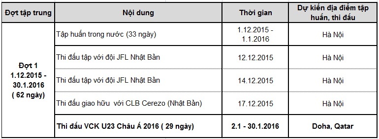 | Kế hoạch tập trung của U23 Việt Nam. |