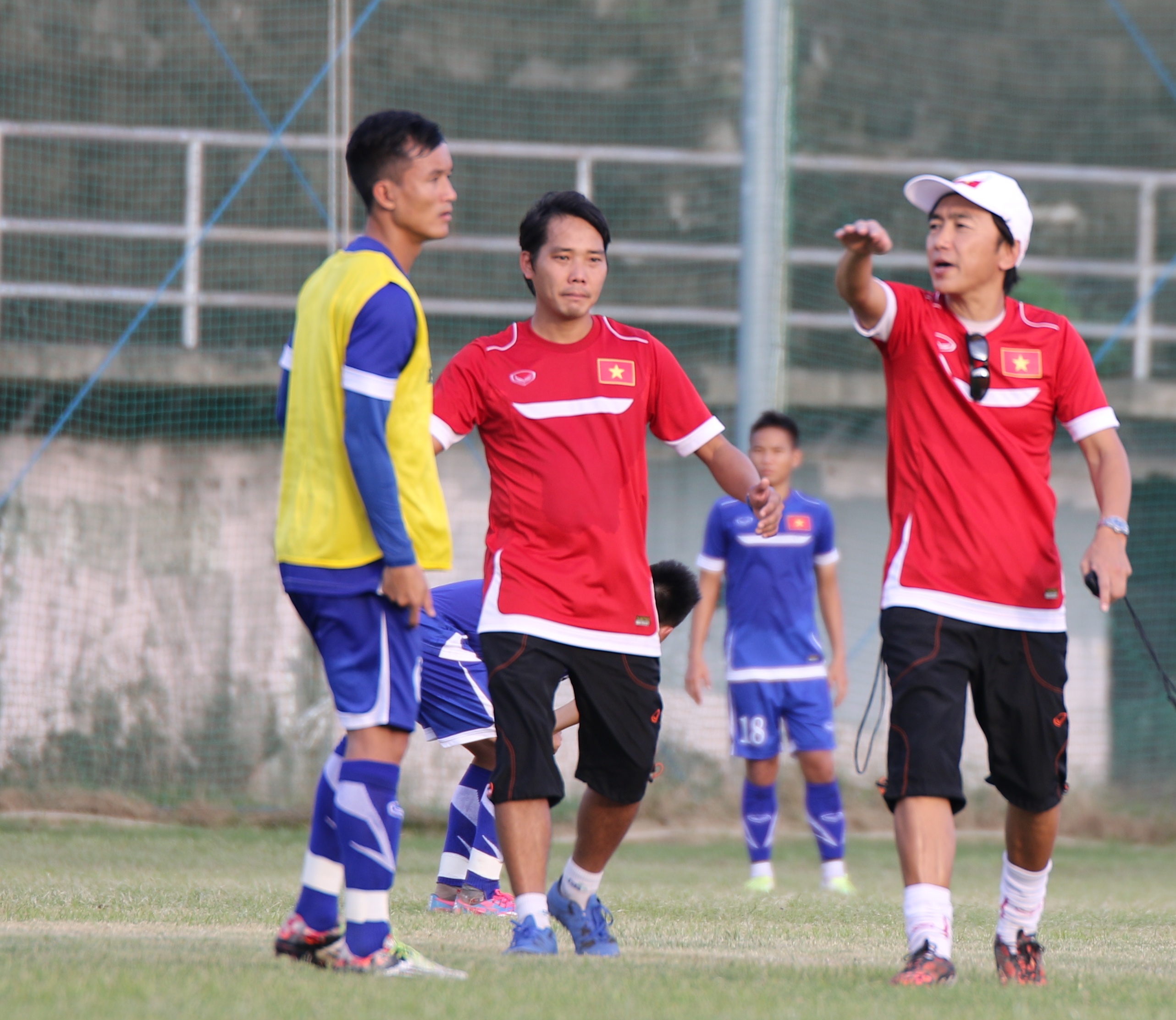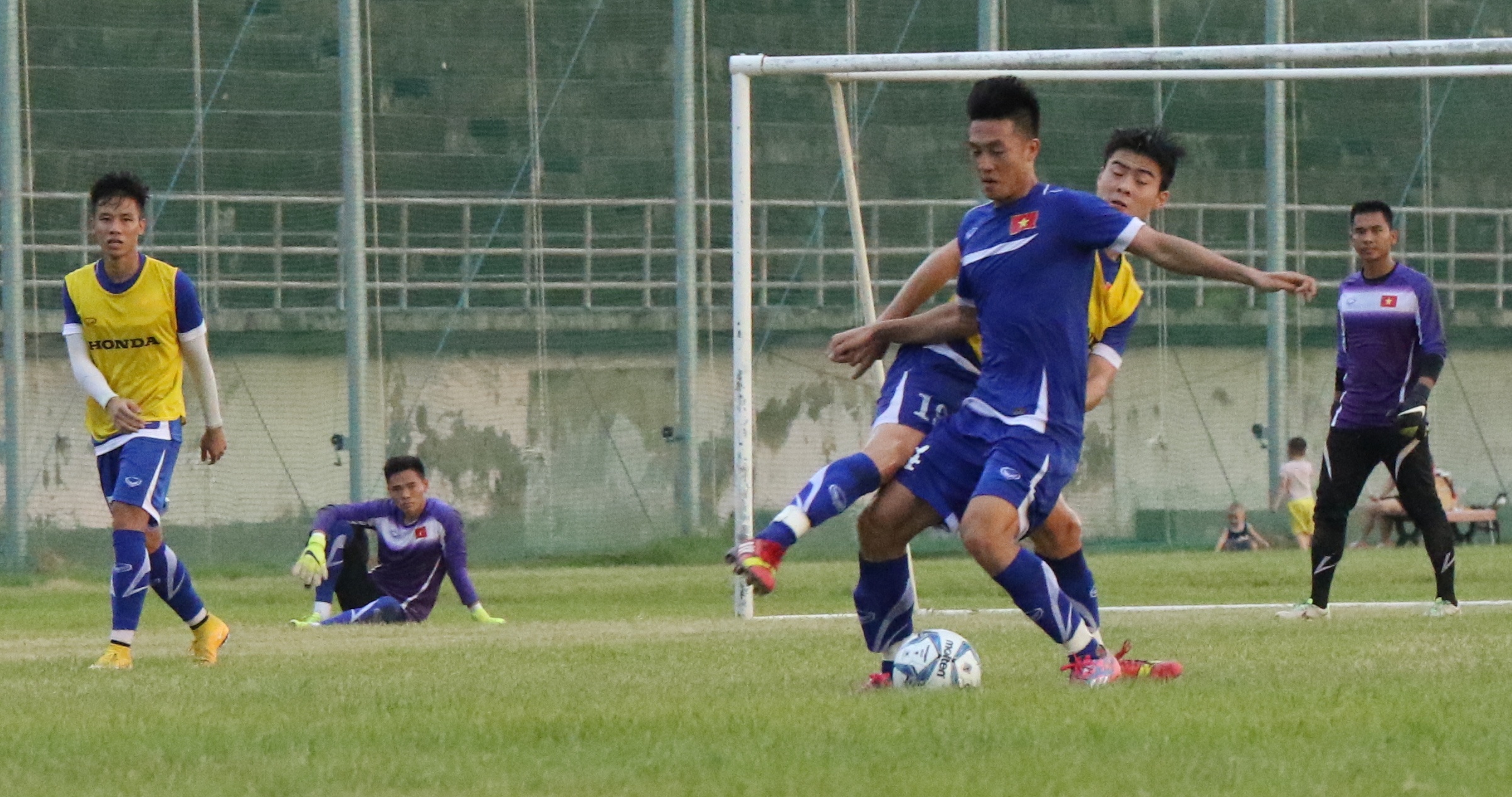 Trong khoảng 30 phút đầu, HLV Miura chỉ đạo học trò rèn chiến thuật bằng các tình huống tấn công giả định. Bài tập này giúp gia cố hàng thủ và rèn khả năng dứt điểm cho hàng công.