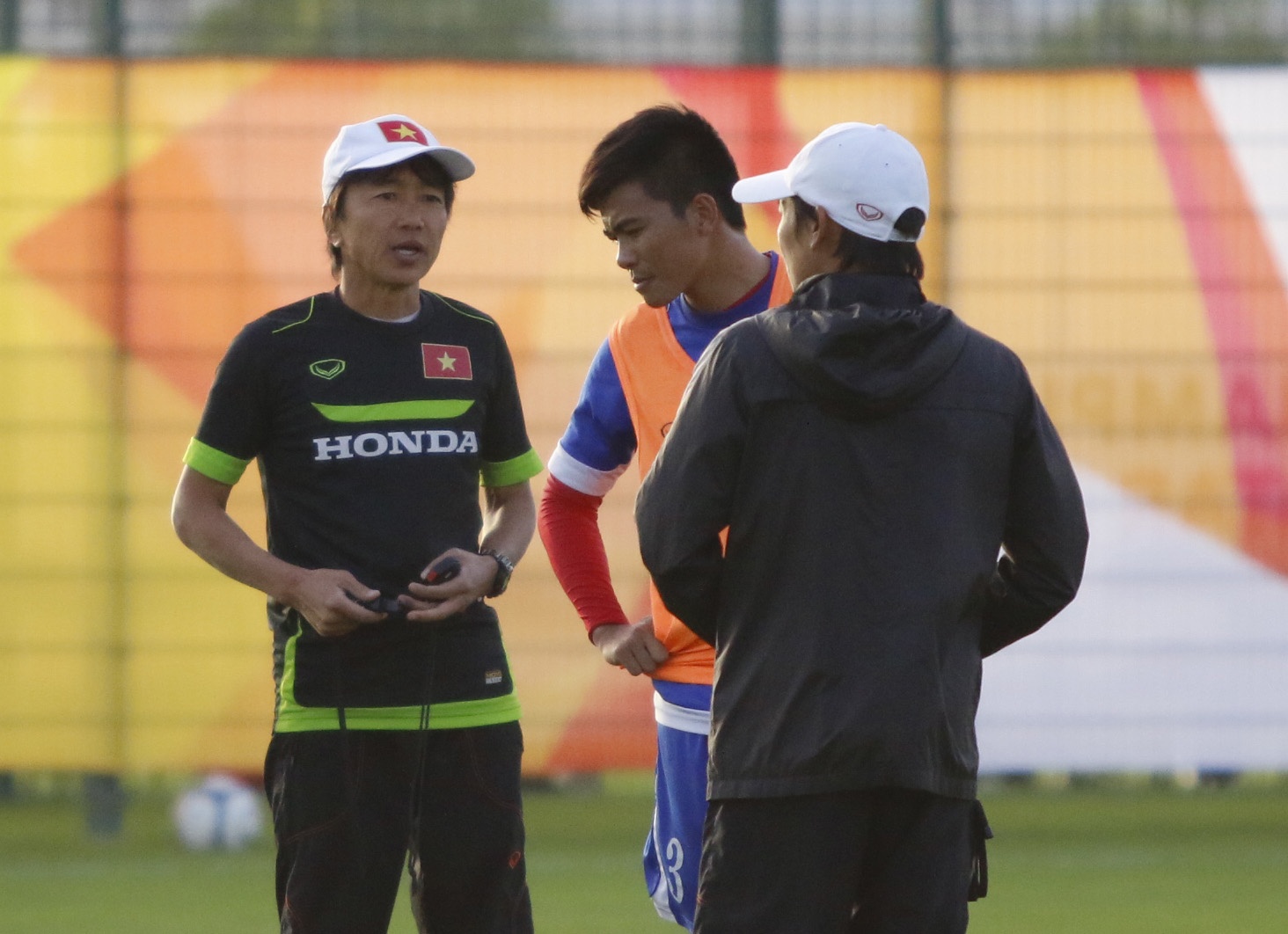 Như thường lệ, HLV Miura và các học trò có buổi tập vào chiều 12/1. Địa điểm tập luyện cách khách sạn Radisson Blu hơn 20 km. Ảnh: Hoài Anh |