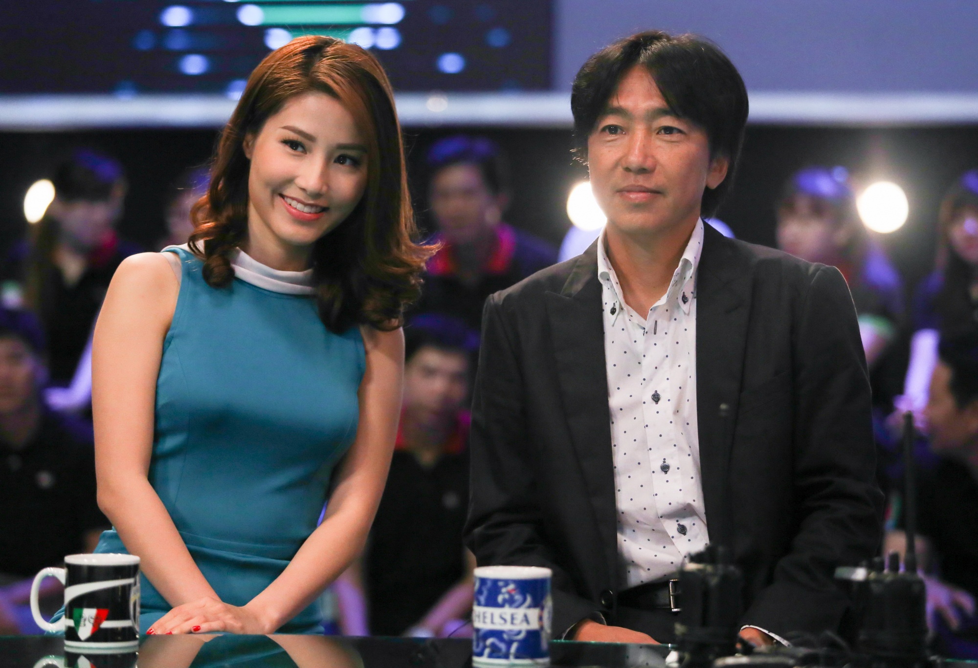 Người đẹp của cuộc thi Hoa hậu Việt Nam tâm sự: “Cách HLV Miura nói chuyện khá chân thành và thẳng thắn. Em cảm thấy ông có tâm huyết với nền bóng đá của chúng ta. Vì vậy, với tư cách một cổ động viên em rất quý mến ông”. Ảnh: Tuấn Mark.