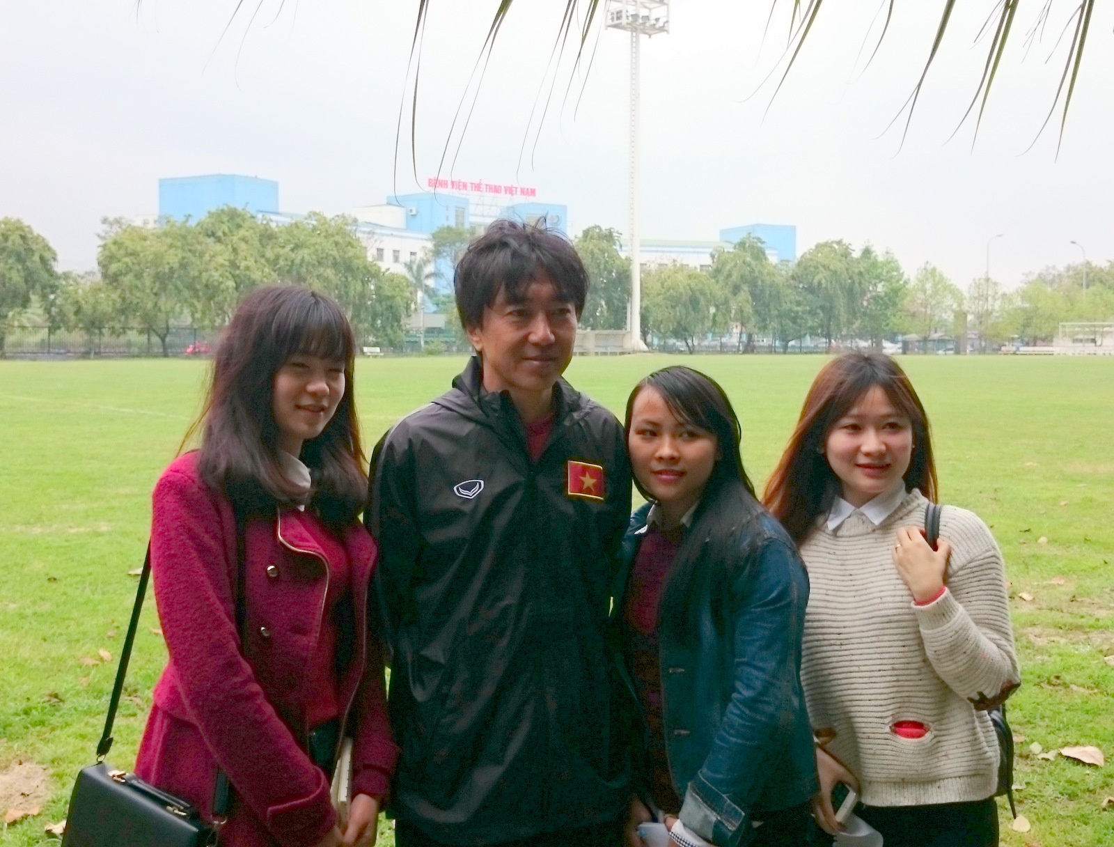 | Bên cạnh những người đẹp nổi tiếng, sau mỗi buổi tập của Olympic Việt Nam, nhiều fan nữ cũng thể hiện sự hâm mộ HLV Miura bằng cách xin chụp ảnh cùng ông. |