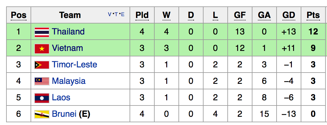 | Thứ tự xếp hạng bảng B trước trận đấu U23 Việt Nam - U23 Đông Timor. |