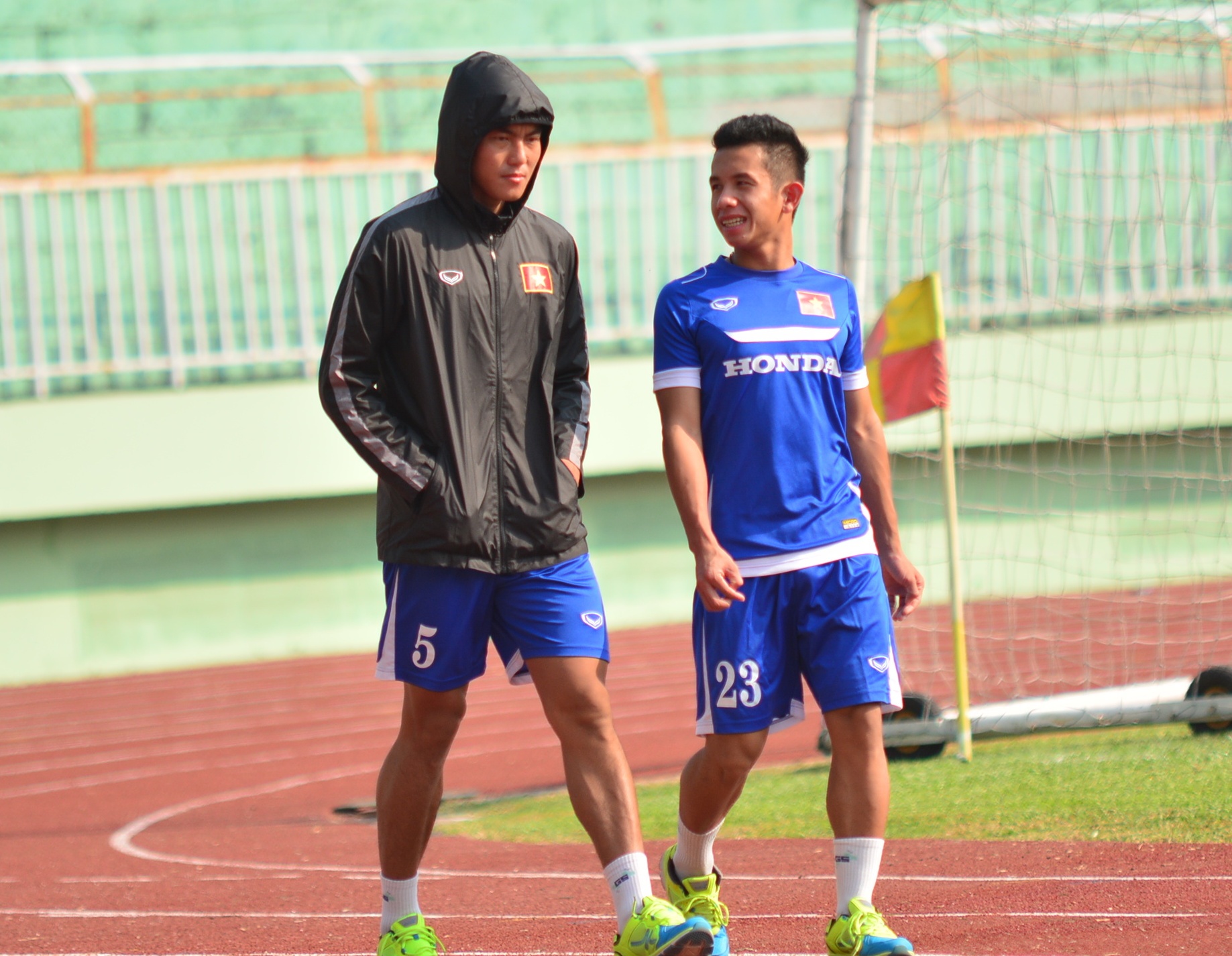 | Phạm Hoàng Lâm (số 5) và Nguyễn Phong Hồng Duy nhiều khả năng chia tay đội tuyển trong vài ngày tới vì chấn thương. Một số cầu thủ khác như Quế Ngọc Hải, Duy Mạnh, Phúc Tịnh vẫn chỉ tập nhẹ vào sáng 12/3. Trong khi đó, Hồ Tuấn Tài thừa nhận chấn thương đầu gối của anh hơn một tuần nữa mới có thể phục hồi. |
