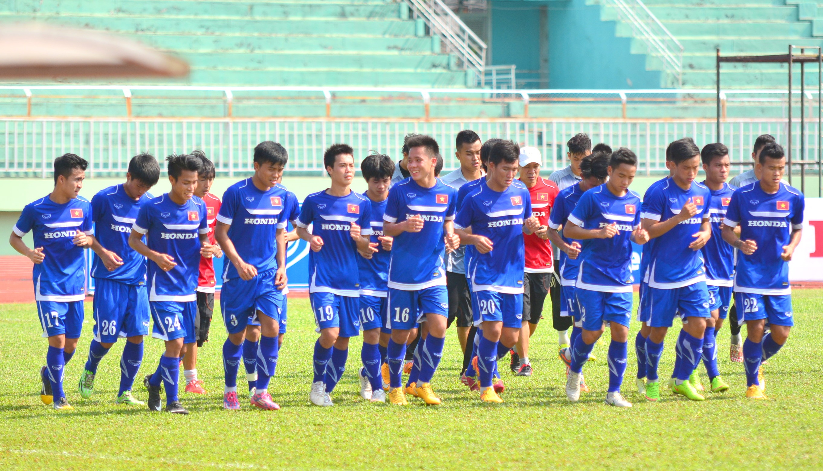 | Buổi tập của thầy trò HLV Miura kéo dài gần 2 tiếng. HLV Miura muốn các cầu thủ làm quen với thời tiết nắng nóng tại TP HCM nên yêu cầu họ vận động liên tục. |