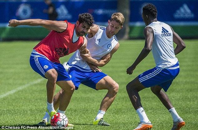 | Cahill tập nhóm 4 người. Anh là trung vệ trụ cột của Chelsea với 34 trận ra sân mùa giải 2014 - 2015. Cahill sẽ tiếp tục đá cặp cùng Terry mùa tới. |