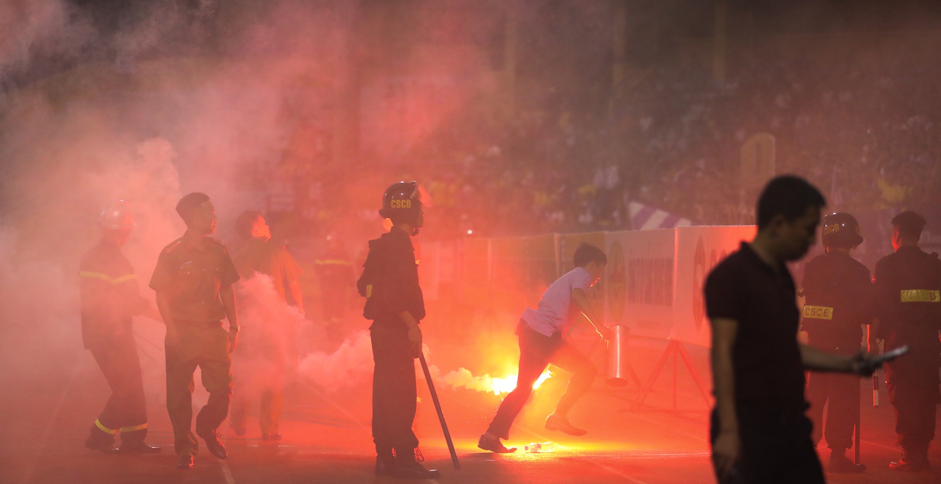 Hôm 11/9, một số CĐV Nam Định trên sân Hàng Đẫy đã đốt nhiều pháo sáng. Sự việc trở nên tệ hơn khi một quả pháo được bắn sang khu vực khán đài A, khiến CĐV nữ đi cấp cứu vì bị thương nghiêm trọng.